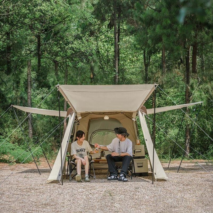 Ayrıca Naturehike Glamping çadırları da kendiliğinden genişleyen çadırlardır. İki kişilik bir çadır alanını verimli bir şekilde kurmak ve tamamlamak yalnızca 10 dakika sürer. Yukarıdaki işlevlere sahip Naturehike Glamping çadırı CNH22ZP015. İkincisi, gezi ve hafif bir hafta sonu kaçamağı için büyük bir aile çadırıdır.