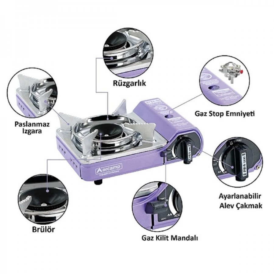Orcamp Tekli Mini Portatif Ocak Mor