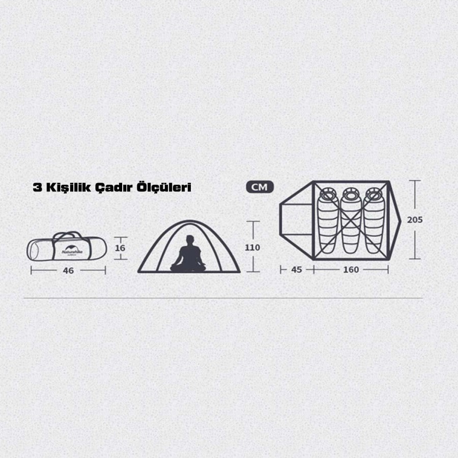 · Naturehike P Serisi Çadır, 3 mevsim kullanıma uygun, üç kişilik bir çadır modelidir.