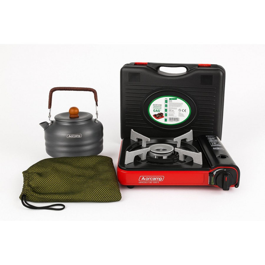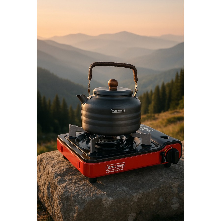 Orcamp Tekli Portatif Kamp Ocak Gaz Stop Emniyetli + OUT-1310 Lüks Kamp Çaydanlığı